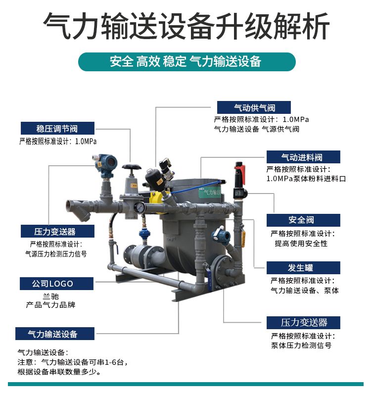 輸送系統(tǒng)單元中第一個AV泵的安裝底座上。多個給料點串聯(lián)為一根輸送管道,整體AV泵同步進料。來自一個或多個灰斗