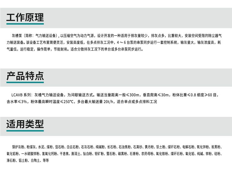 AV泵氣力輸送(灰槽泵)系統(tǒng)適用的特點及主要環(huán)境:煤粉,粉煤灰、除塵灰,生石灰,